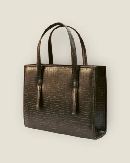 Black Croc-Embossed Handbag