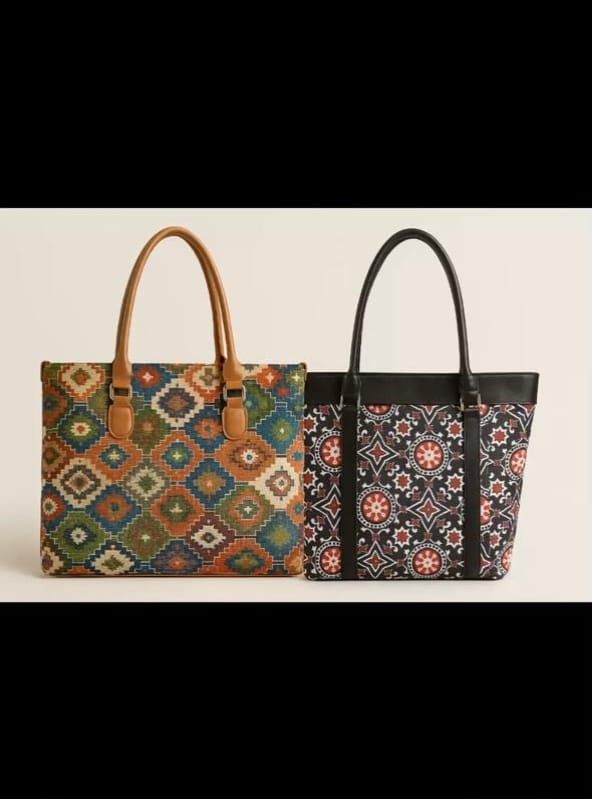 Add a touch of tradition and elegance to your everyday style with this beautifully crafted tote bag collection. Featuring vibrant ethnic and tribal-inspired patterns, these bags are designed with premium woven fabric and durable leather straps.