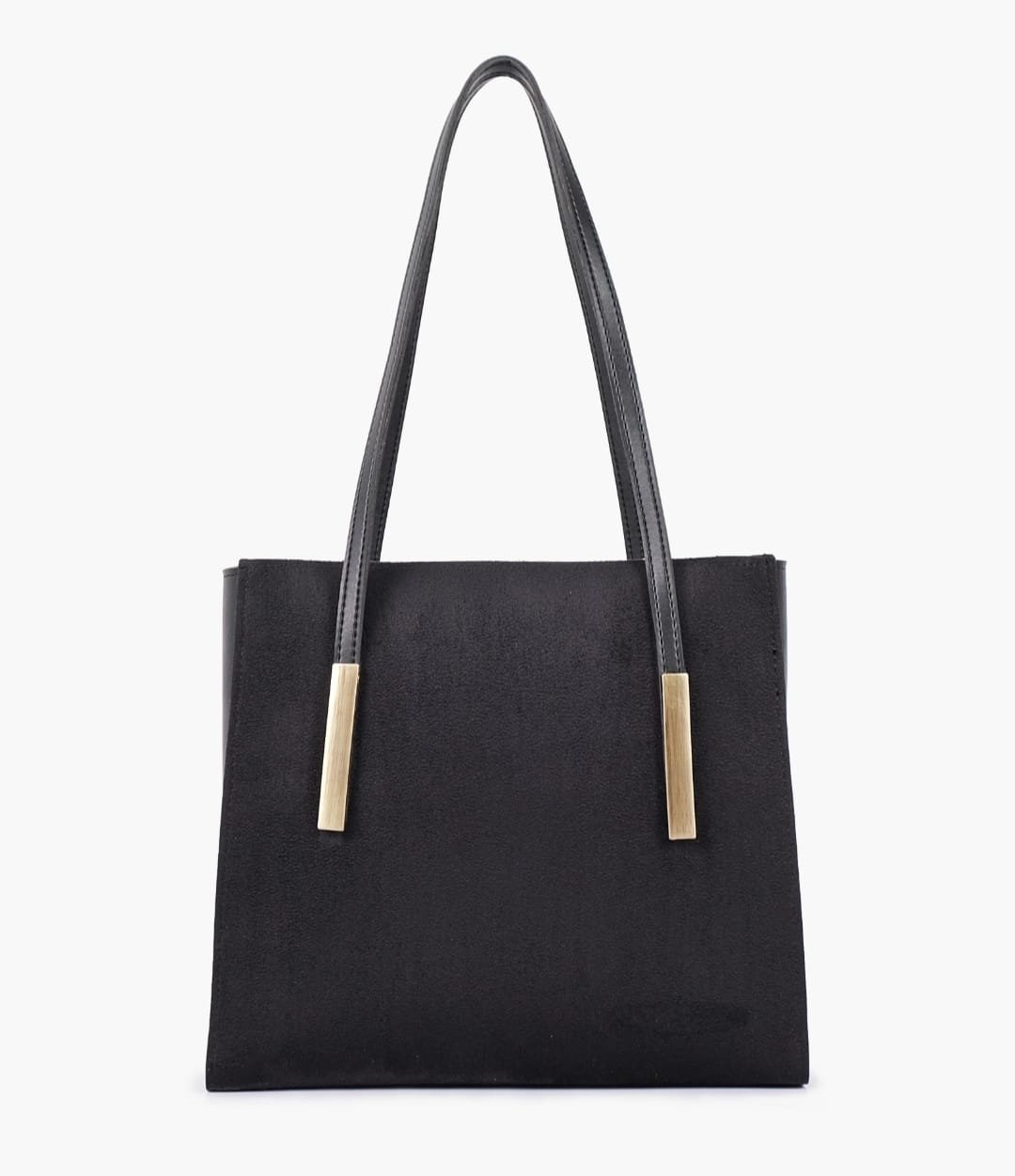 Modern Black Faux-Suede Tote with Gold Bar Hardware