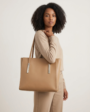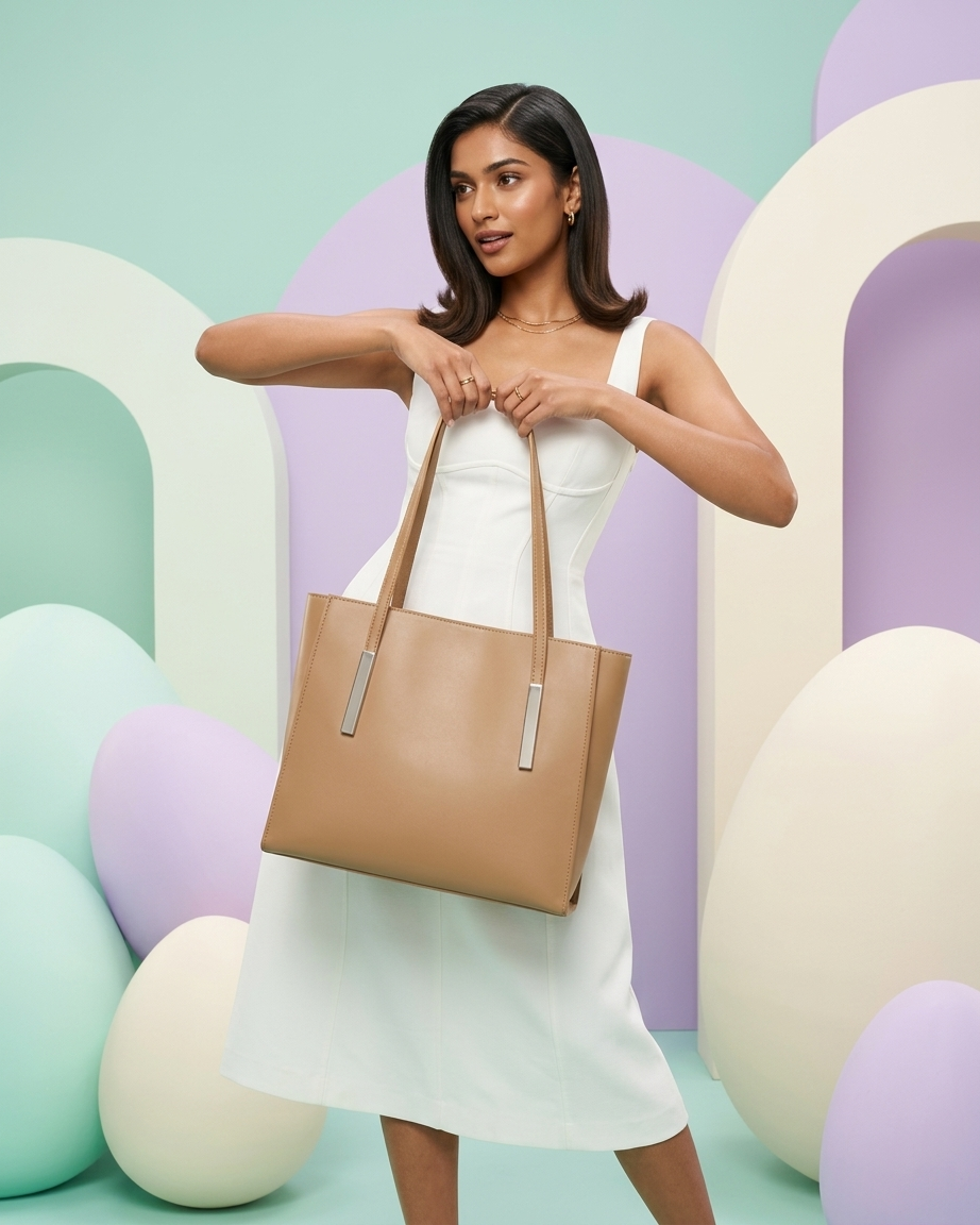 Every inch of this tote reflects the Pomelli commitment to sustainable luxury. Crafted from our signature high-grade vegan leather, the material offers a consistent, smooth grain that resists creasing and maintains its elegant “trapezoid” silhouette even when fully loaded with tech and essentials.