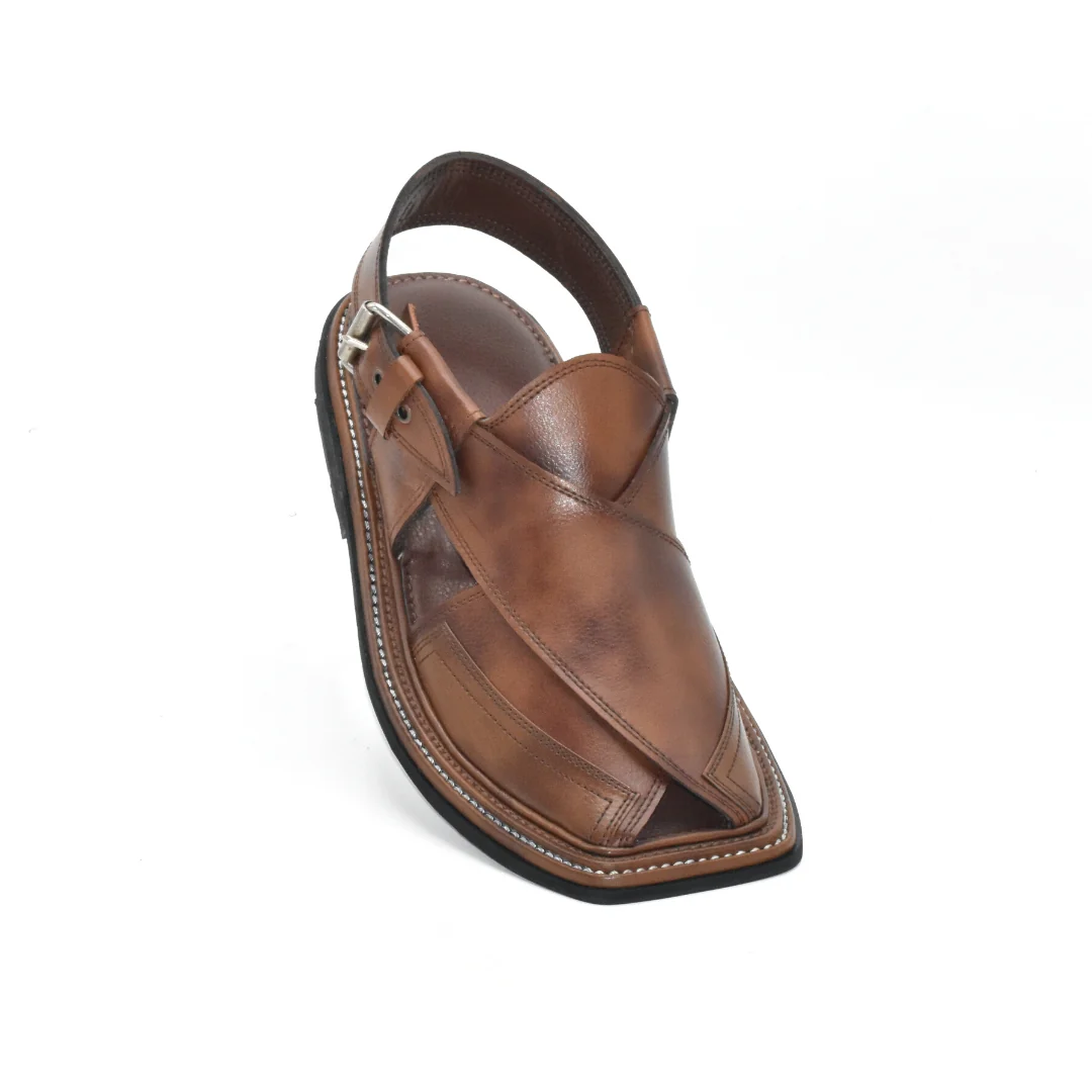 Introducing the timeless and traditional Takidar Chappal, a classic round-shaped design that has been a staple footwear choice for generations. Handcrafted with care, these Peshawari chappals are a symbol of heritage and culture.
